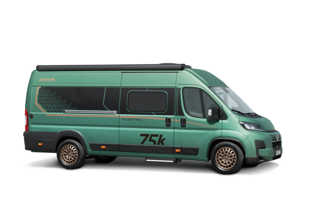 Es ist Zeit, deinem Abenteuer einen neuen Look zu geben: Zur Feier von 75.000 gebauten Camper Vans präsentiert Dethleffs die Globetrail 75k Iconic Edition. In Isny mit Leidenschaft perfektioniert, setzen wir auf einzigartige Farben und auffällige Details – innen wie außen. Für dich. Für deine Reise. Denn wer mit dem Globetrail von Dethleffs fährt, erlebt erprobte Qualität und fährt nie gewöhnlich, sondern mit Charakter und Statement. Persönlich. Besonders.